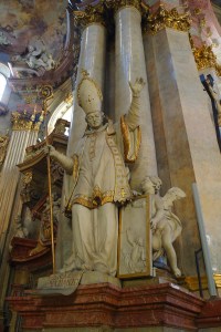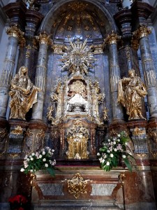 Offerte au couvent des Carmélites de Prague en 1628, cette statue au célèbre manteau brodé changé 10 fois par an est originaire d’Espagne et eut les mains brisées par les Protestants pendant la Guerre de 30 ans. Une fois réparée, elle fut liée à plusieurs événements miraculeux qui ravivèrent la dévotion des fidèles, dans le pays mais aussi dans le monde entier. Elle est installée sur cet autel depuis 1878.