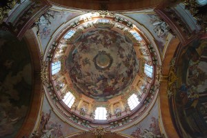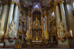 L’église n’a été achevée qu’en 1735, mais il y avait déjà des traces d’une paroisse à cet endroit au XIIIème siècle. Elle présente quelques particularités intéressantes : d’abord, énorme de l’extérieur, elle affiche des dimensions bien plus modestes à l’intérieur, dues à un effet d’optique et à l’épaisseur des murs. Ensuite, son plafond peint et son lustre font partie des plus beaux ornements de toutes les églises de Prague. Enfin, des concerts de musique classique y sont donnés presque tous les jours, voire plusieurs fois par jour pendant la haute saison.