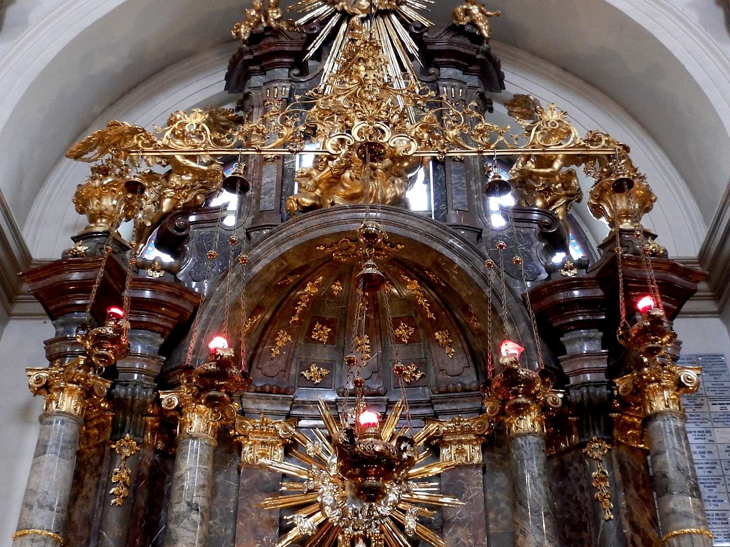 Offerte au couvent des Carmélites de Prague en 1628, cette statue au célèbre manteau brodé changé 10 fois par an est originaire d’Espagne et eut les mains brisées par les Protestants pendant la Guerre de 30 ans. Une fois réparée, elle fut liée à plusieurs événements miraculeux qui ravivèrent la dévotion des fidèles, dans le pays mais aussi dans le monde entier. Elle est installée sur cet autel depuis 1878.