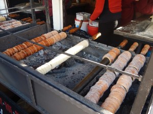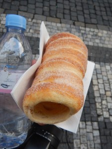 Derrière ce nom imprononçable se cache une délicieuse pâtisserie d’origine slovaque qui est aujourd’hui une véritable spécialité de la Vieille Ville de Prague. On en trouve à tous les coins de rue, en particulier au mois de décembre : à l’approche des fêtes, les stands proposant cette pâte à la farine enroulée, grillée et assaisonnée de sucre et de noisettes poussent comme des champignons sur les marchés de Noël. Le Trdelník peut être proposé nature, ou agrémenté de chocolat ou glace.