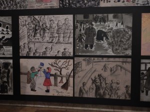 A Terezín se sont retrouvés tout ce que la République Tchèque comptait de peintres, musiciens, auteurs et chanteurs. L’exposition L’art dans un camp de concentration retrace la façon dont ces activités ont rendu la vie plus supportable à certains avec des concerts et représentations théâtrales d’enfants. L’une de ces enfants, Helga Weiss, a produit des dessins utilisés par les nazis pour promouvoir la vie dans le camp. Sur conseil de son père, elle se met aussi à dessiner ce qu’elle voit réellement et ses croquis, dissimulés dans des matelas, survivent. Ils ont été rassemblés dans Le journal d’Helga. A 15 ans, elle est déportée avec sa mère à Auschwitz et fait face à l’inévitable tri : d’un côté ceux capables de travailler, de l’autre ceux qui vont « prendre une douche ». Flairant le piège, elle ment sur son âge et celui de sa mère afin d’être envoyée dans la colonne de droite et échappe ainsi à la chambre à gaz. Toujours en vie aujourd’hui, elle vit dans l’appartement qu’elle occupait avant d’être déportée et donne régulièrement des conférences à l’université.