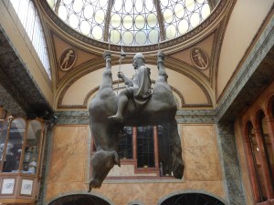 Lors d’une visite de la nouvelle ville, le clou du spectacle est la place Venceslas, avec en fond le splendide musée national et au centre la statue du saint patron du pays, Wenceslas, érigée en 1912. David Cerny, encore lui, en a fait une parodie/hommage que l’on peut voir dans la galerie commerçante Lucerna, non loin : suspendus du plafond, le cheval retourné et le cavalier assis sur son ventre sont censés représenter le courage de Wenceslas, qui continue le combat malgré la mort sur le champ de bataille de sa monture.