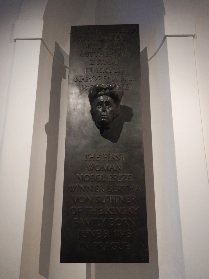 Née à Prague le 9 juin 1843 au sein de la famille Kinsky, cette journaliste, écrivaine et pacifiste a été la première femme à recevoir le prix Nobel de la Paix, en 1905. Ce n’est que justice puisque, un temps secrétaire d’Alfred Nobel, elle lui aurait inspiré la création de cette branche de son prix à travers leurs correspondances. C’est son action au sein du bureau international de la paix, ainsi que la publication de son livre Bas les armes !, qui lui valent le Nobel. Elle meurt, peut-être heureusement, quelques semaines avant le début de la première guerre mondiale contre laquelle elle avait tenté de mettre en garde les gouvernements européens.