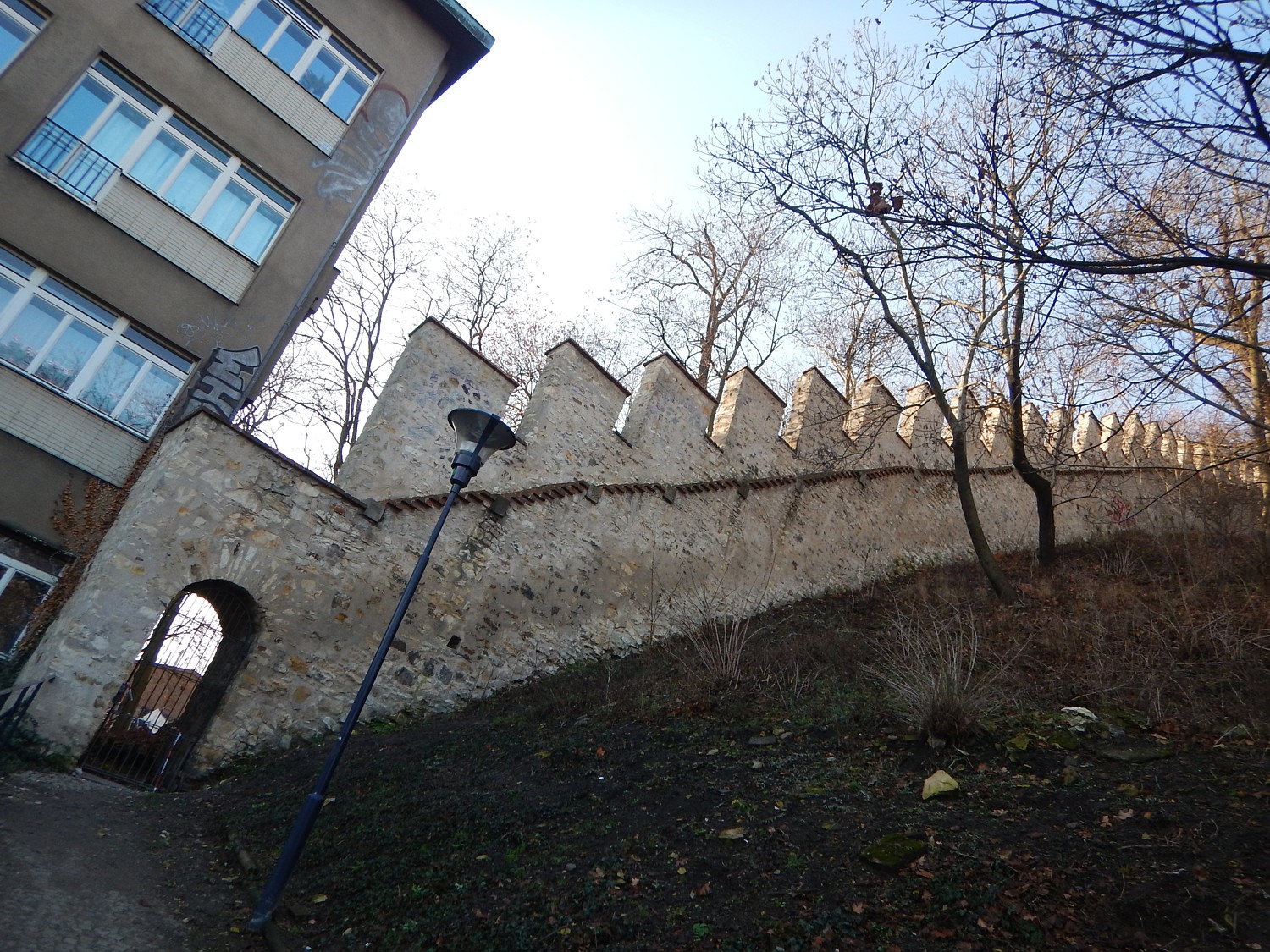 Prague doit une bonne partie de ses monuments les plus connus à Charles IV… Et aussi la plupart des moins connus, mais non moins intéressants. Ce mur de défense érigé entre 1360 et 1362 sur la colline de Petřín tient son nom de la grande famine de 1361 : pendant cette période, les pauvres de la ville gagnaient de quoi se nourrir en participant à sa construction. On raconte même parfois que c’était là le véritable but de ces travaux, une légende qui a probablement plus à voir avec l’image positive de l’empereur qu’avec la réalité, puisqu’il avait donné l’ordre de commencer avant le début de la pénurie.
